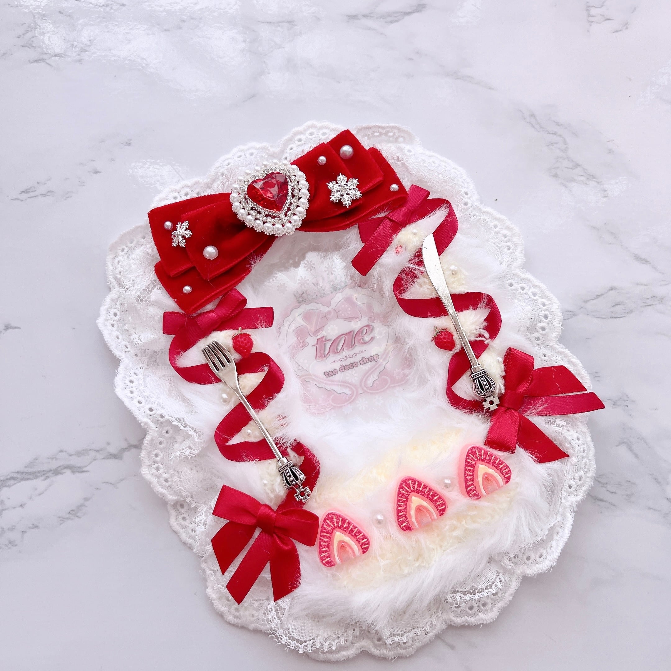 A7 クリスマス限定 ベルベットリボン ショートケーキ トレカ 硬質 ケース デコ レース リボン 量産型