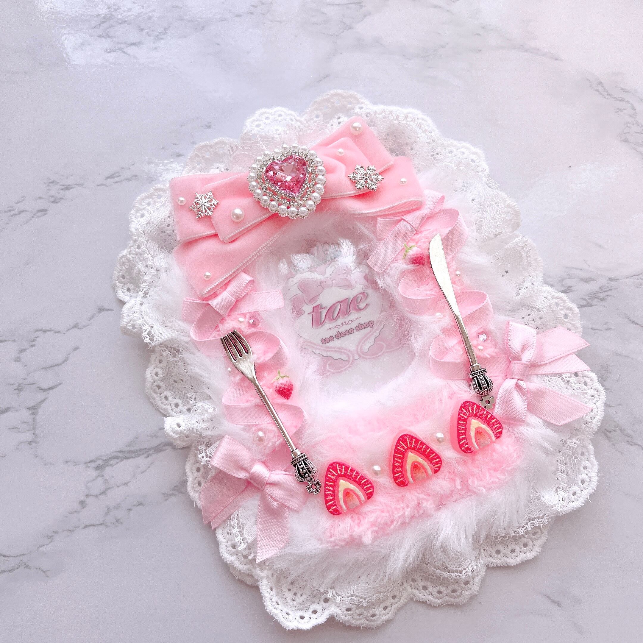 A7 ピンク クリスマス限定 ベルベットリボン ショートケーキ トレカ 硬質 ケース デコ レース リボン 量産型
