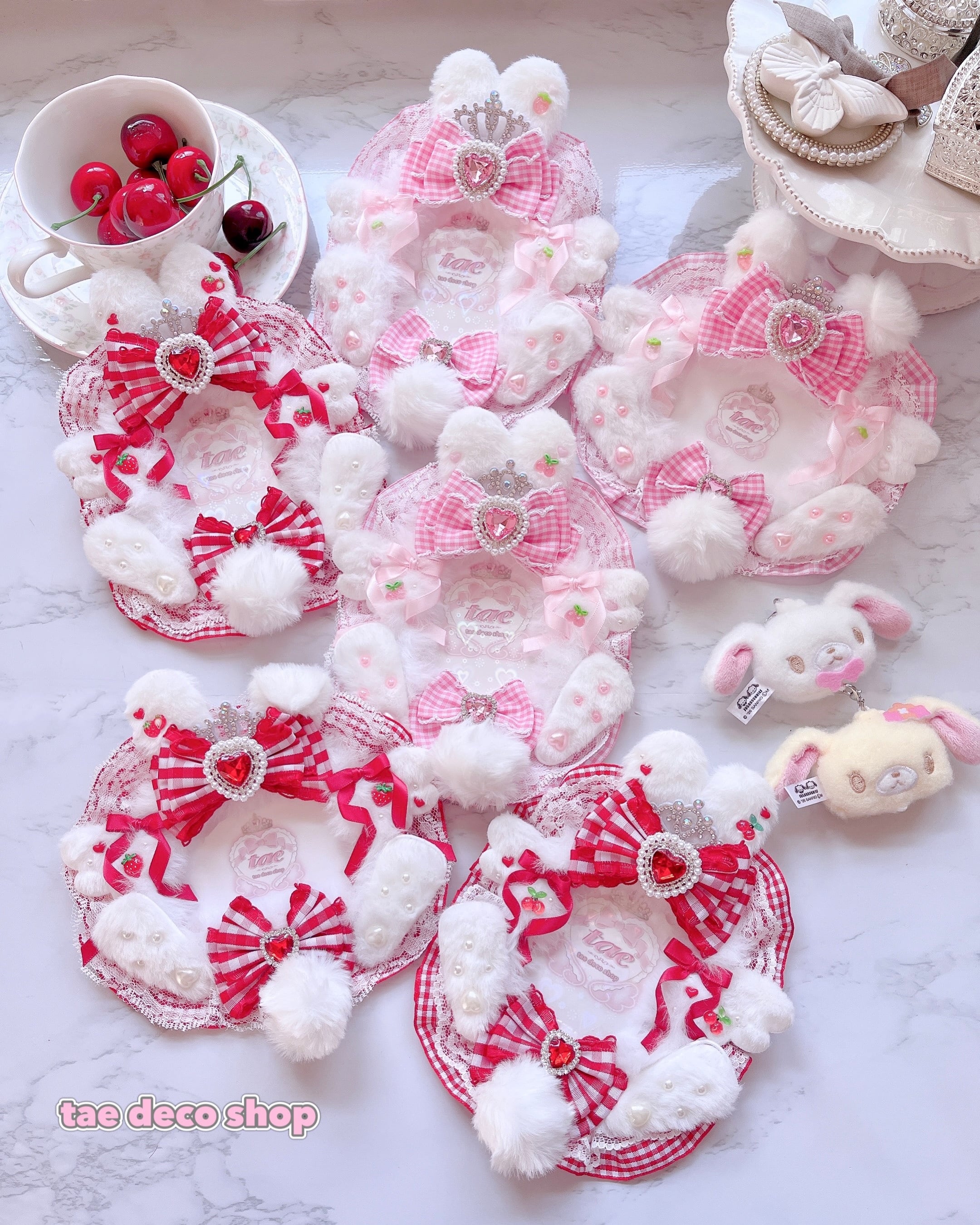 B8 トレカケース いちご 赤 ギンガムチェック お座りうさちゃん トレカ 硬質 ケース デコ レース リボン