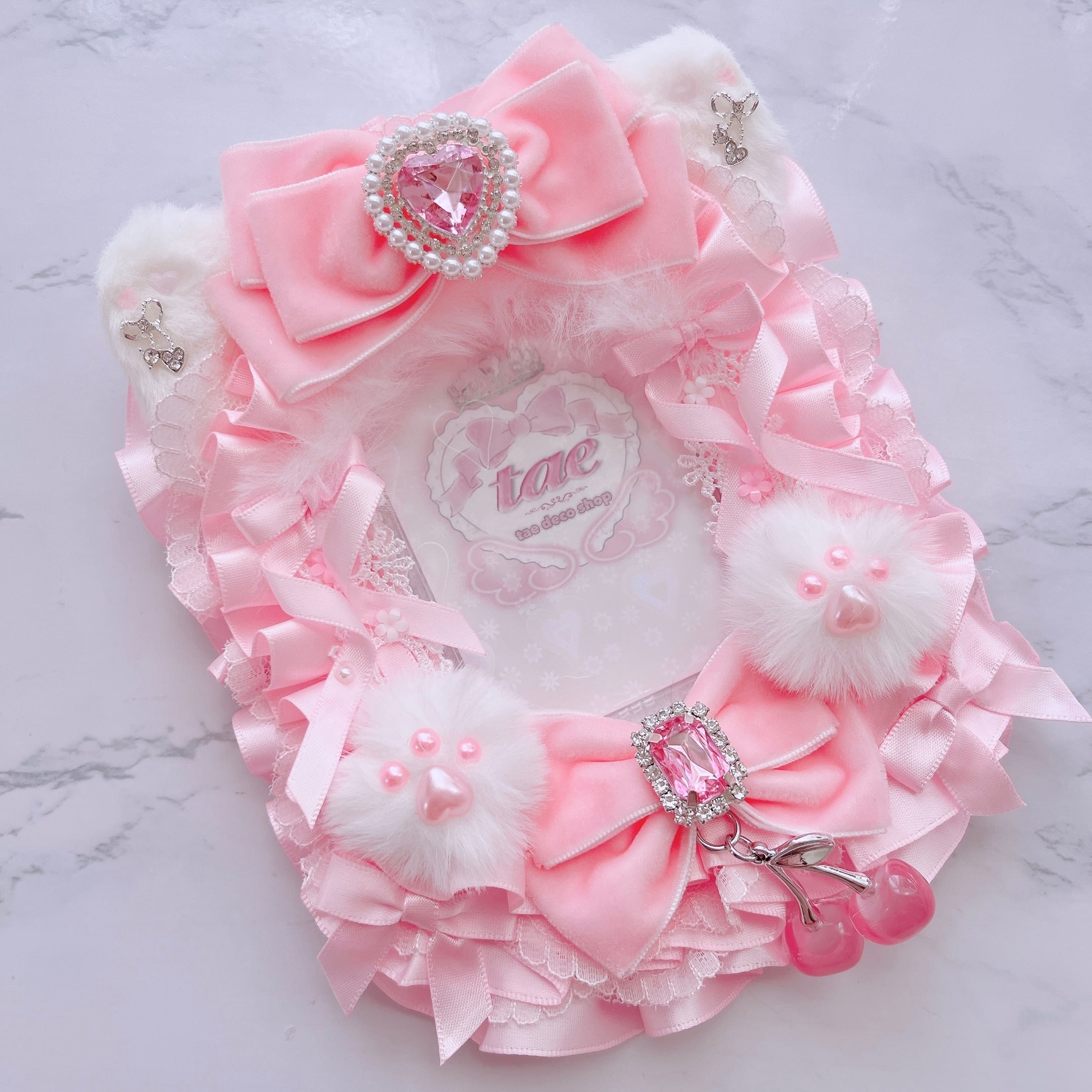 A7 トレカケース 猫耳 さくらんぼ トレカ 硬質 ケース デコ レース リボン