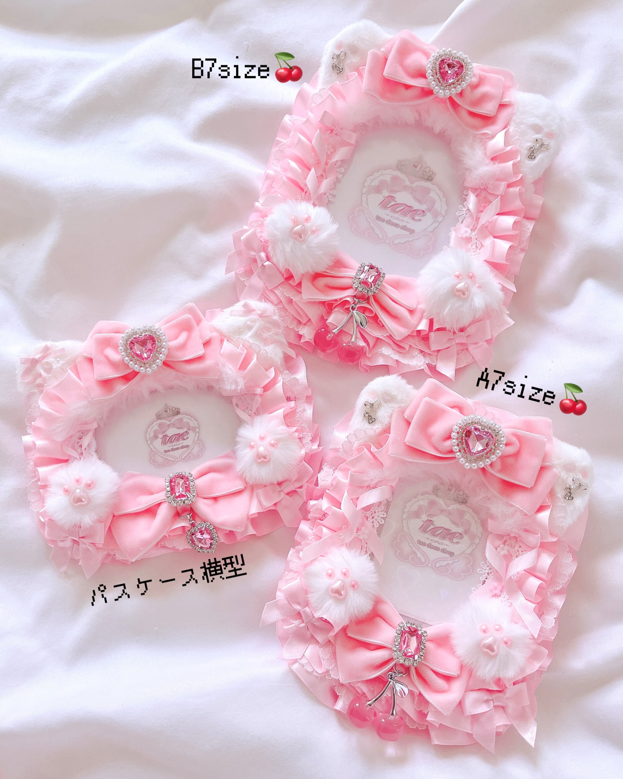 横型 パスケース ID 名札 猫耳 ベルベットリボン トレカ 硬質 ケース デコ レース リボン