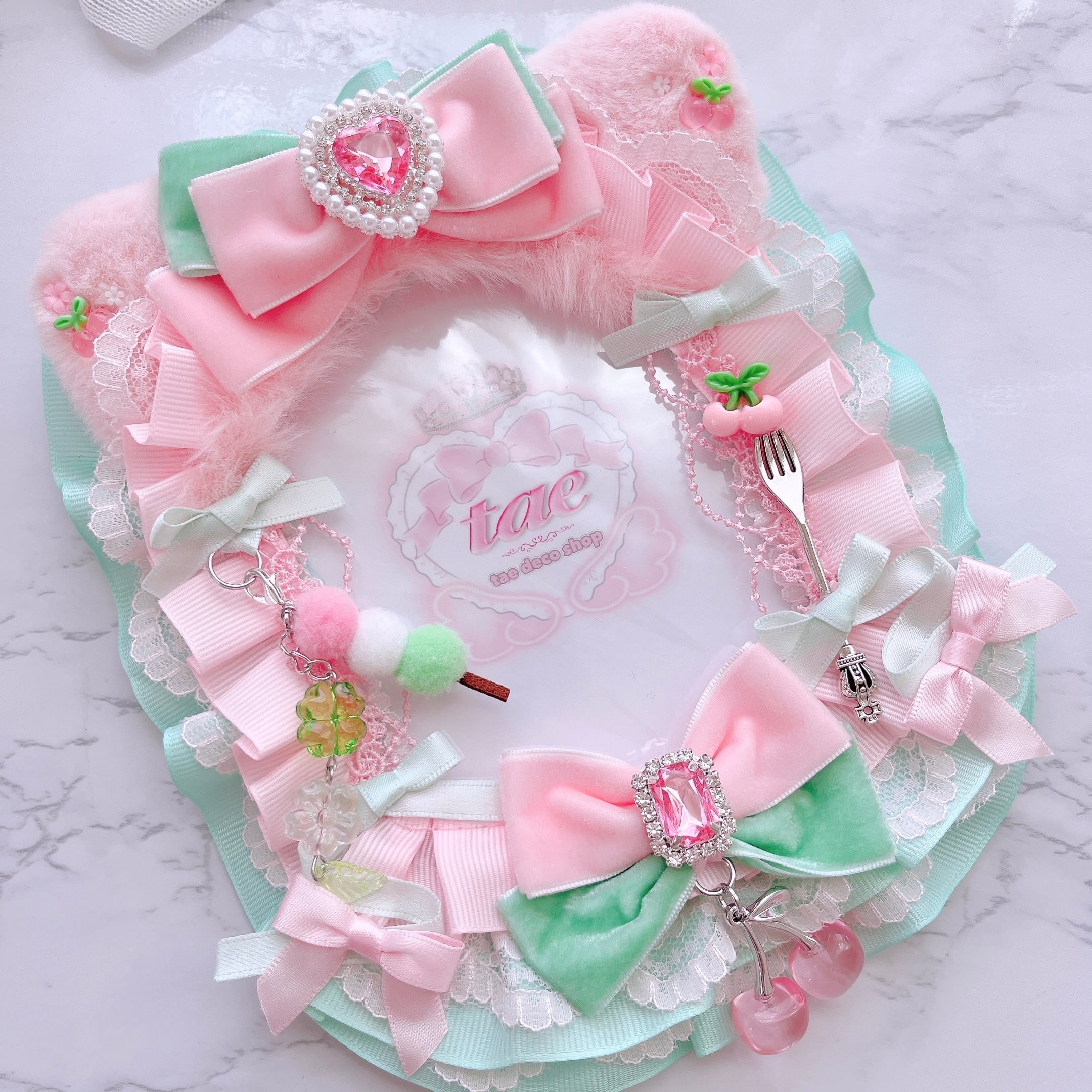 B7 トレカケース 春限定 猫耳 お団子 さくらんぼ トレカ 硬質 ケース デコ レース リボン