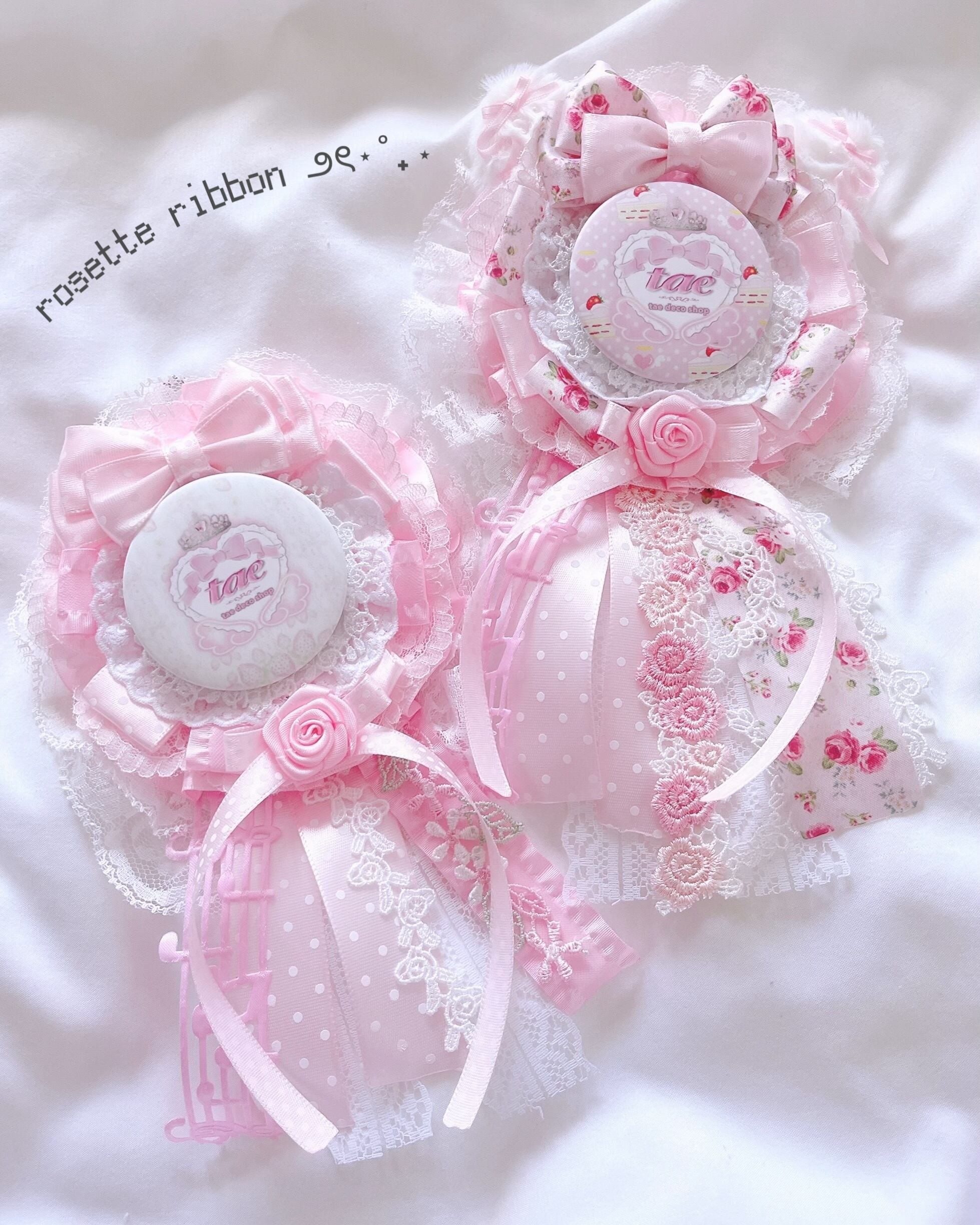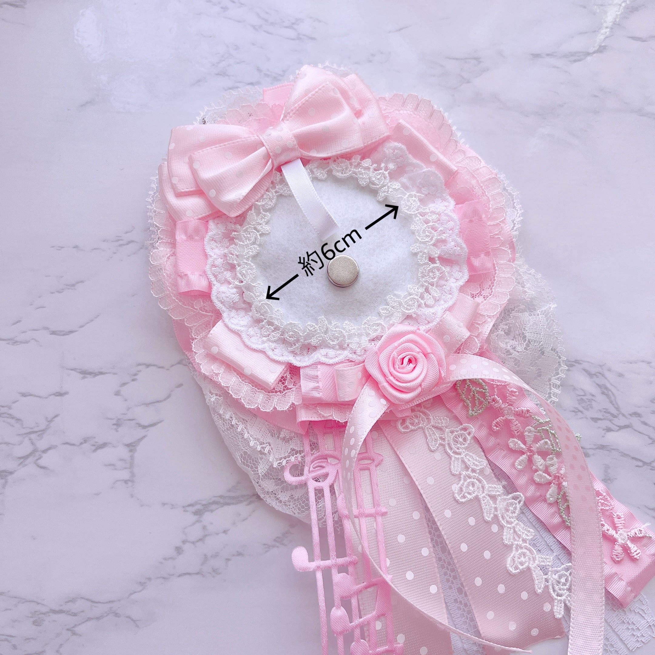ロゼット① 57mm 58mm 水玉 ドットリボン 缶バッチ 缶バッジ 韓国ロゼット デコ レース リボン