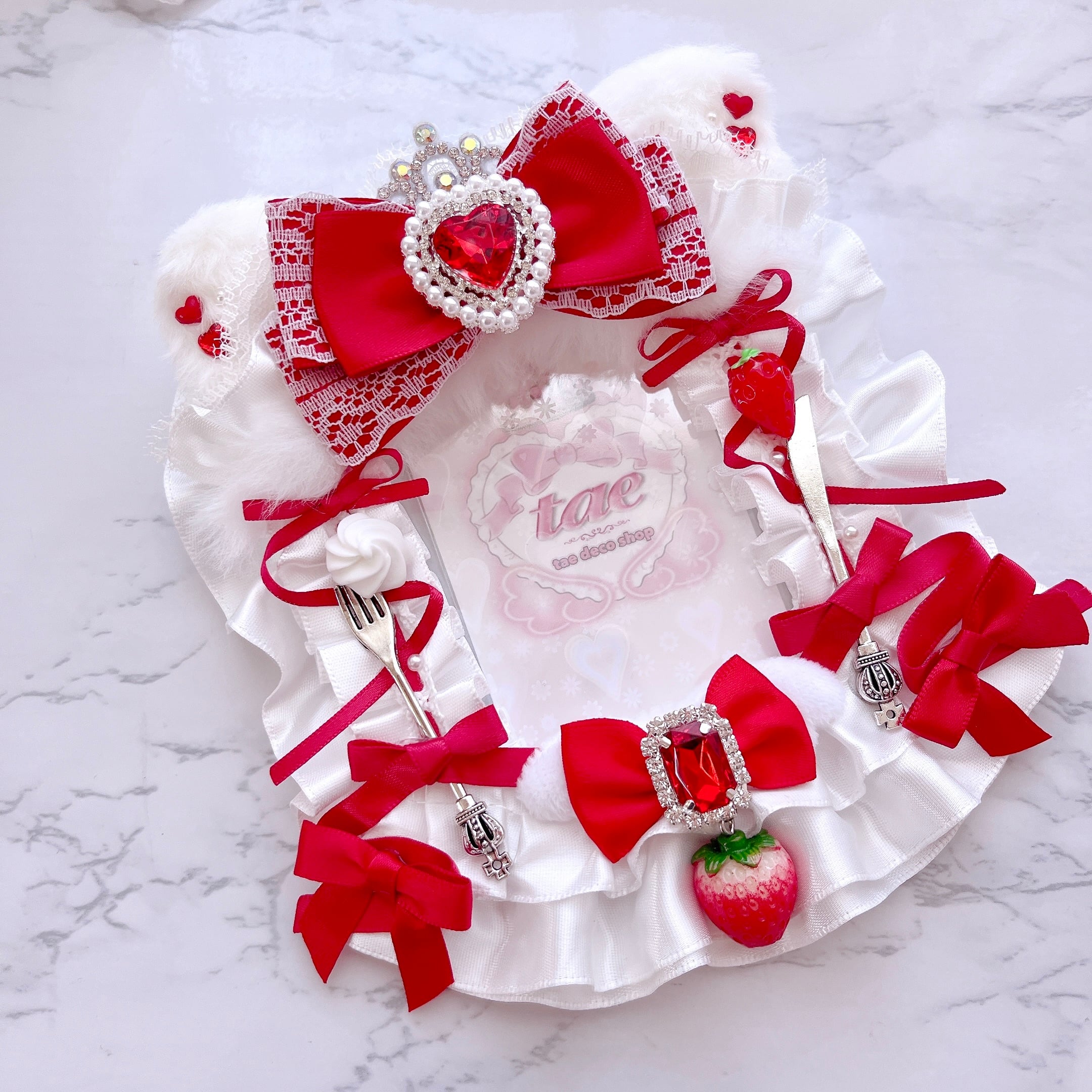 B8 猫耳 フリルホイップ ショートケーキ トレカ 硬質 ケース デコ レース リボン 量産型