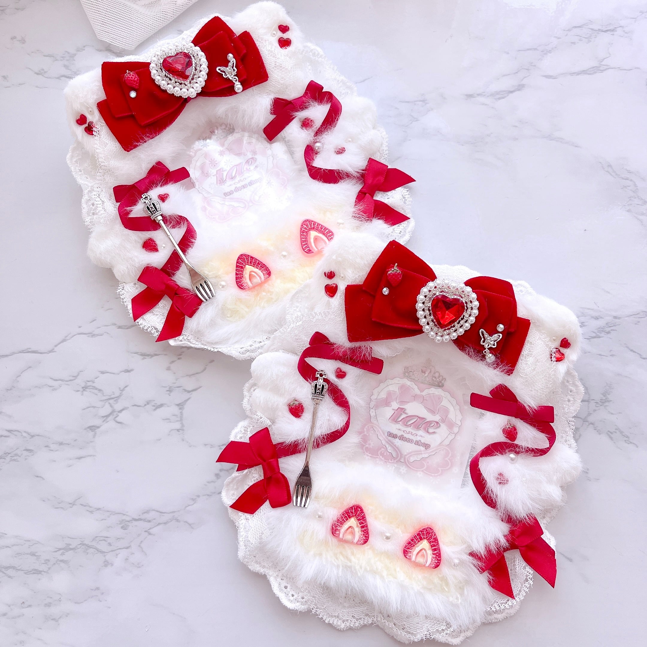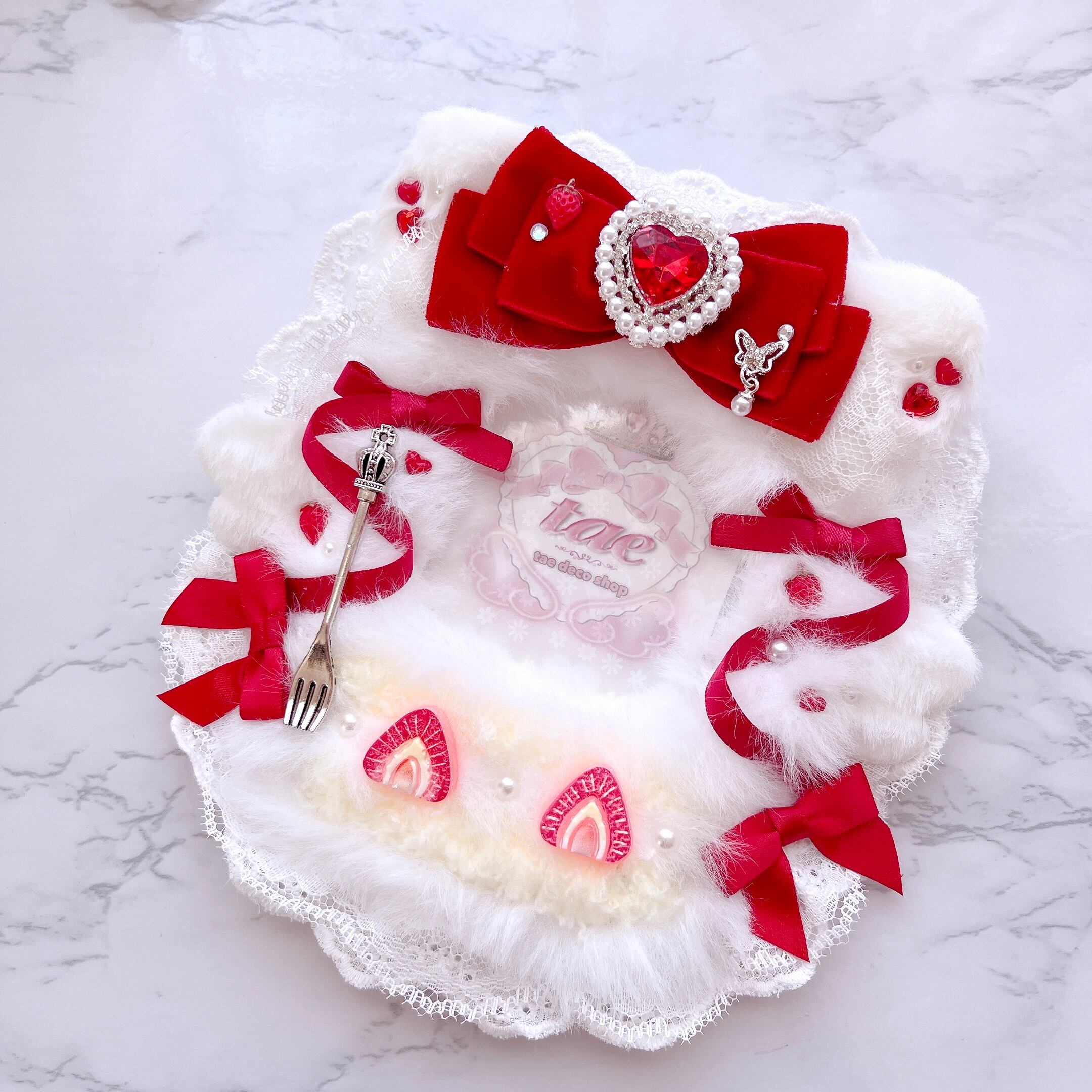 B8 猫 ベルベットリボン ショートケーキ トレカ 硬質 ケース デコ レース リボン 量産型