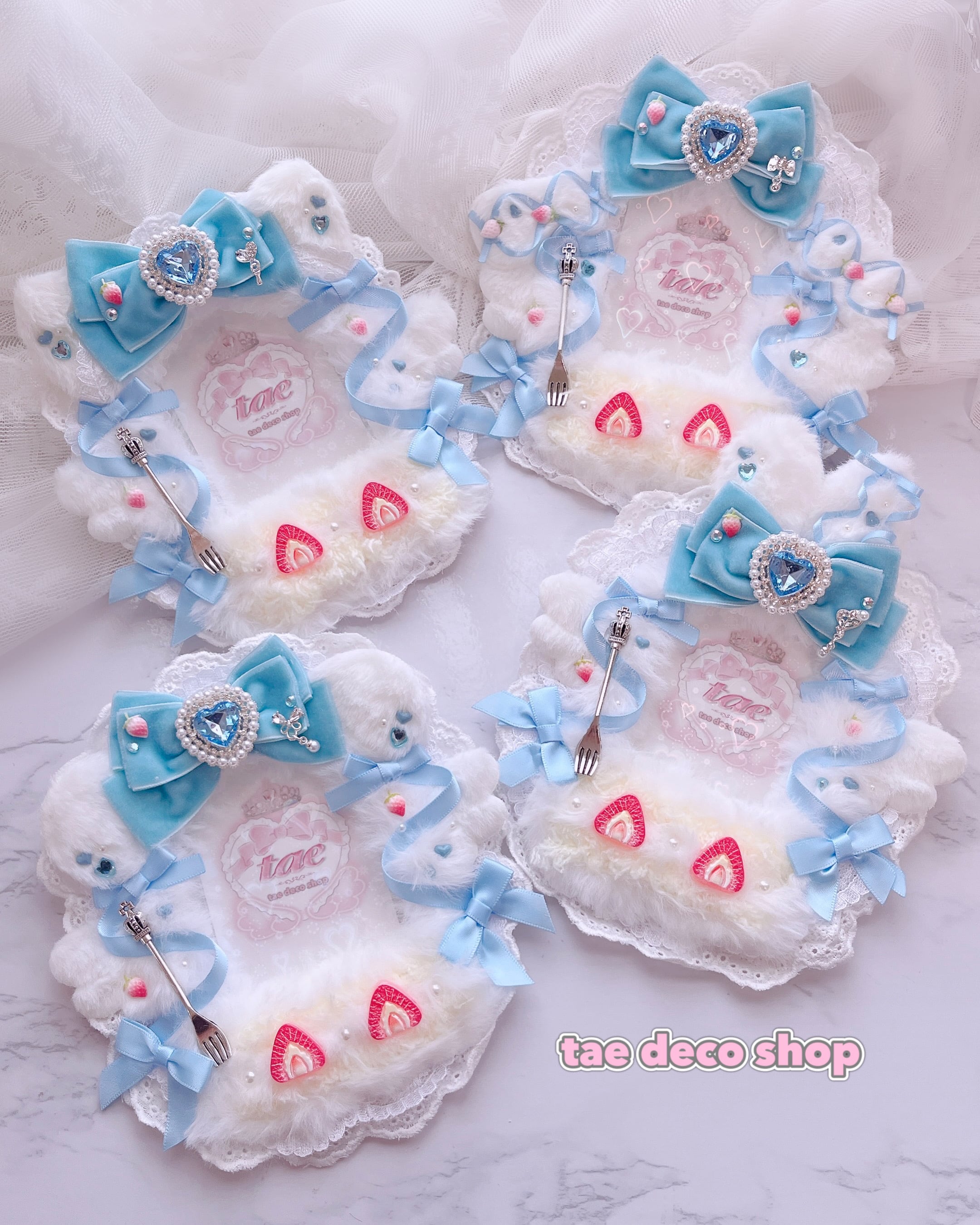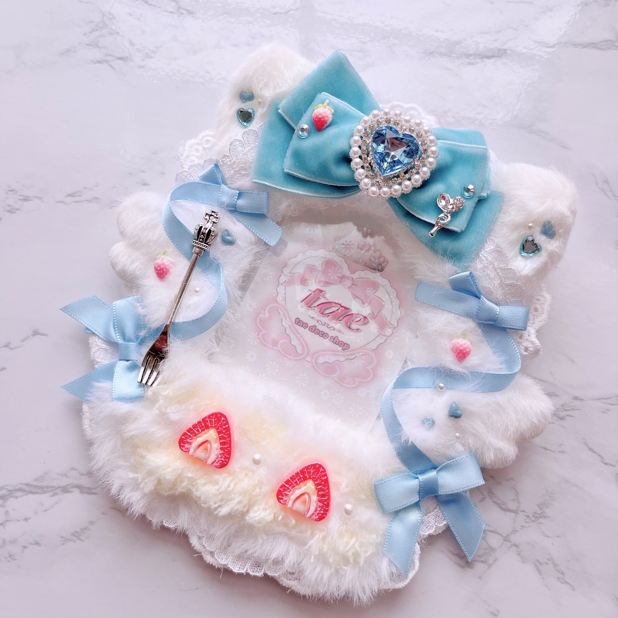 B8 猫 水色 ベルベットリボン ショートケーキ トレカ 硬質 ケース デコ レース リボン 量産型