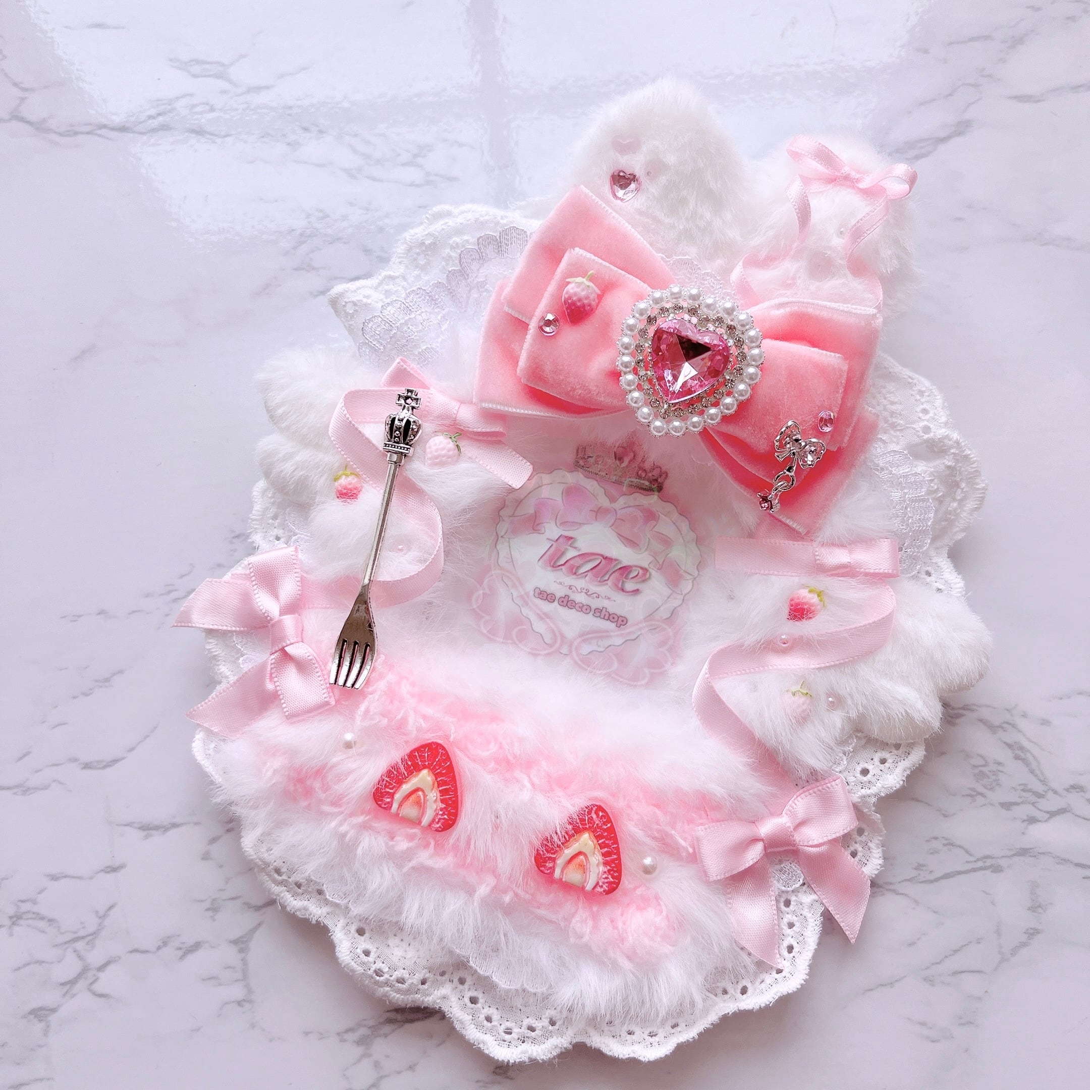 B8 うさぎ ピンク ベルベットリボン ショートケーキ トレカ 硬質 ケース デコ レース リボン 量産型