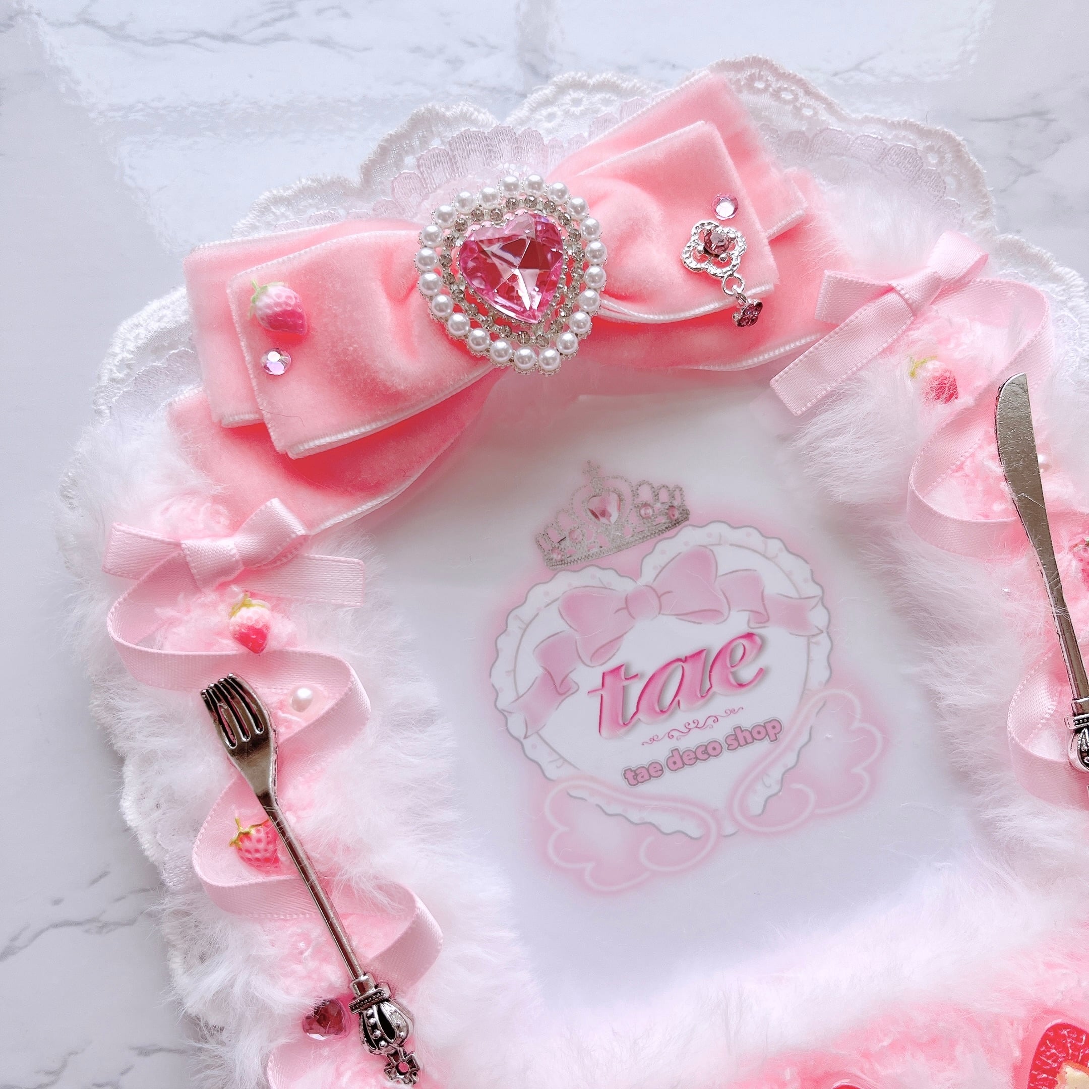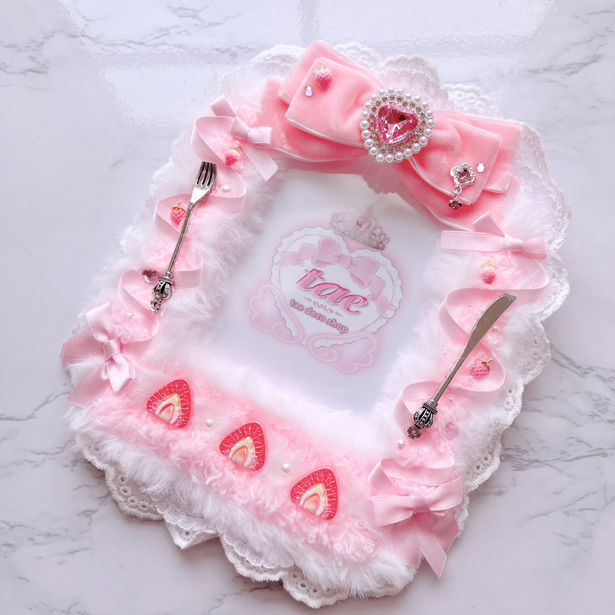 B7 ピンク ベルベットリボン ショートケーキ トレカ 硬質 ケース デコ レース リボン 量産型
